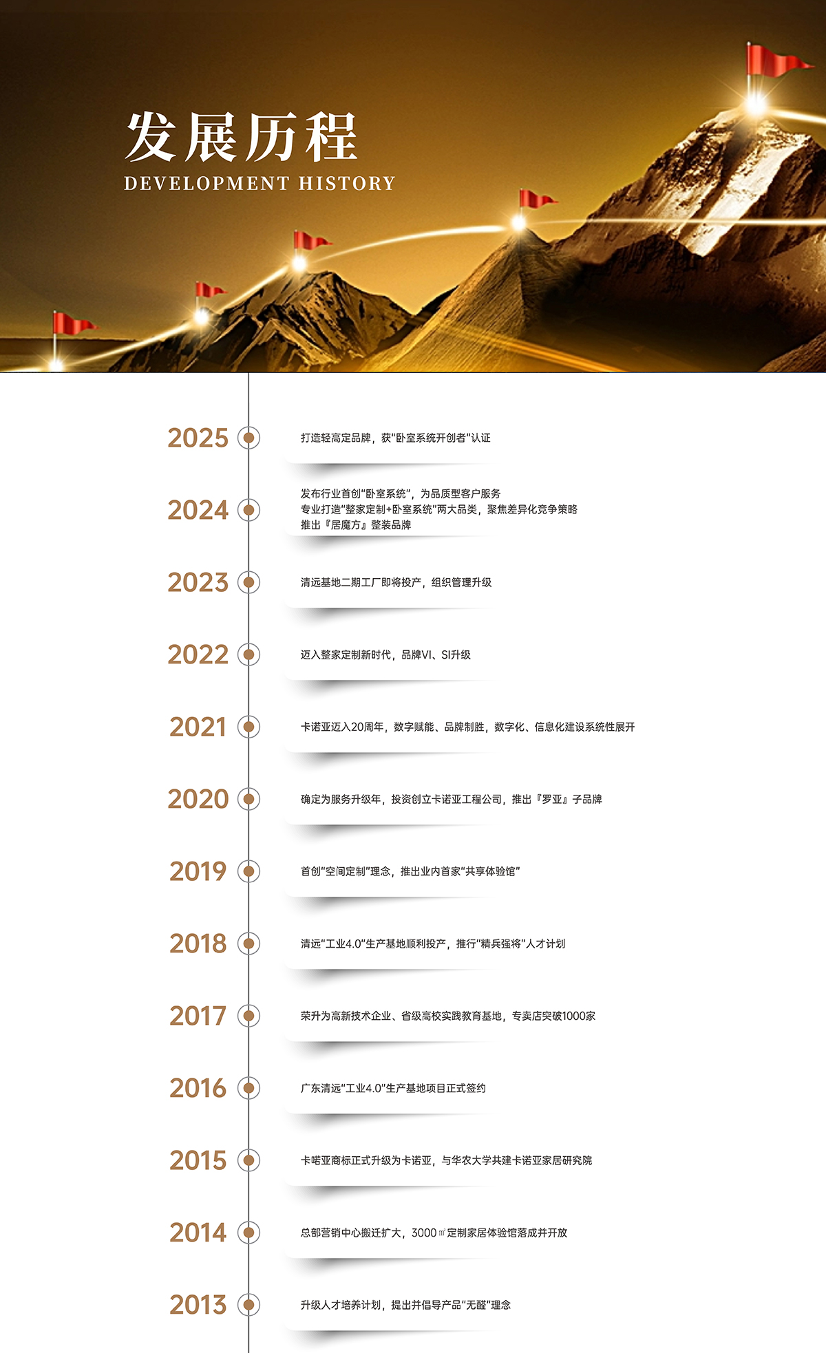 卡諾亞是集研發(fā)、銷售、生產(chǎn)、服務于一體的卡諾亞(Knoya)、羅亞雙品牌運營的高新技術企業(yè)。卡諾亞創(chuàng)立于2001年3月,現(xiàn)擁有廣東清遠、廣東廣州兩大生產(chǎn)基地,以及國際領先的信息化、智能化生產(chǎn)線,還擁有家居研究院及商學院兩大“院系”。在產(chǎn)品的研發(fā)上,始終堅持科學、創(chuàng)新、前沿,目前,已榮獲各類專利及著作權(quán)200多項。