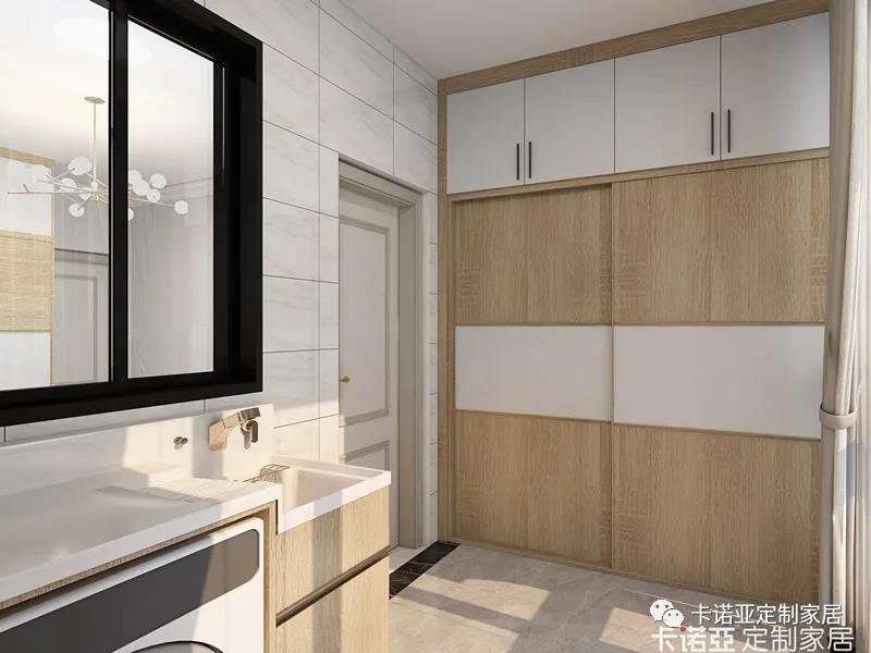 洗曬一體又休閑,陽臺兩邊打柜,一邊放洗衣機,另一邊則設計了一個衣柜。