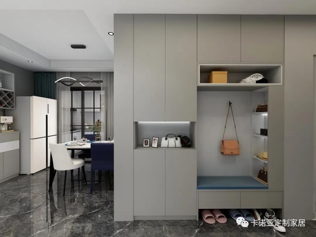 加入“俄羅斯方塊”造型的入戶柜將設計巧思隱于線面的細節里美觀方便的同時還具備超強收納功能懸空的設計,開放式收納格