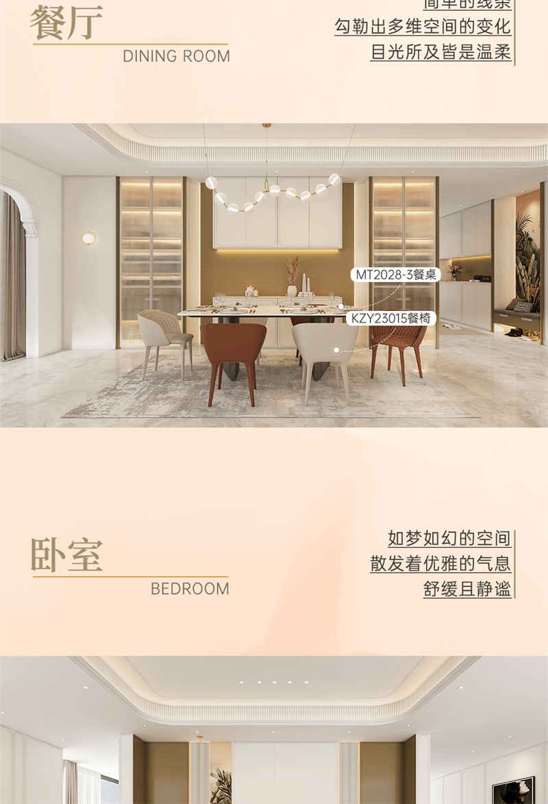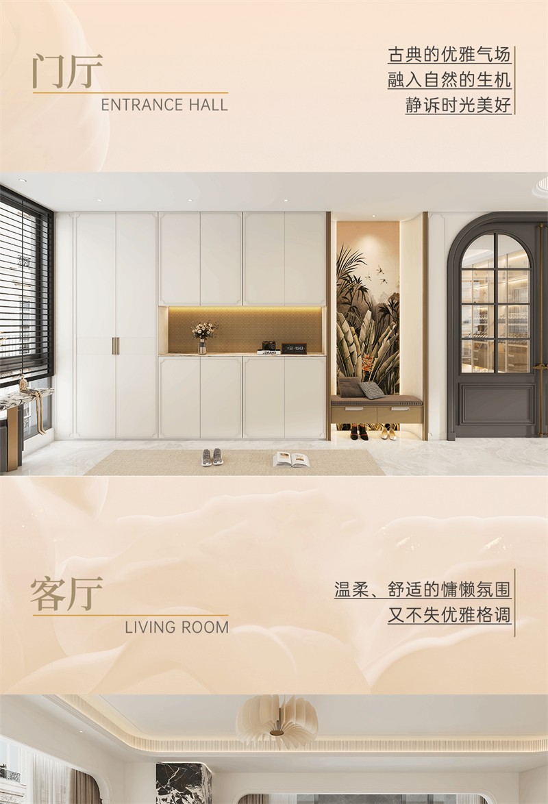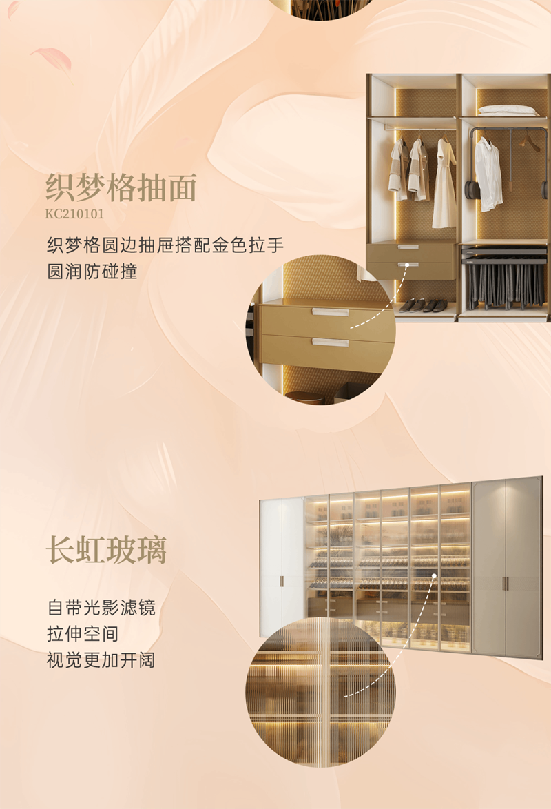 系列產品整體以奶油白和金色元素為空間基調,將法式的氣質融入現代空間,以精致細節的融入,讓家成為容納更多想象的美好生活殿堂,讓“美”成為一種生活態度。