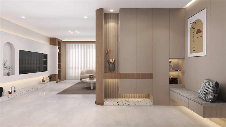 本案設計,保留了原戶型的大部分結構,甄選業主鐘愛的深調木飾面表達空間敘事。整體空間穩重大氣又不會感覺沉悶壓抑,渲染木元素的自然性,捕捉光影變幻的印記,沉淀溫馨愜意的氛圍。與業主密切的溝通中,我更加深入了解一家三口不同的喜好與需求,通過進一步的梳理,以“家”為中心點,構建一個情感共存之所。設計師設計理念:設計就是著重于點、線、面的靈活應用,把整個環境營造出家的溫馨。整家之美|第五屆卡諾亞杯全國家居空間設計大賽