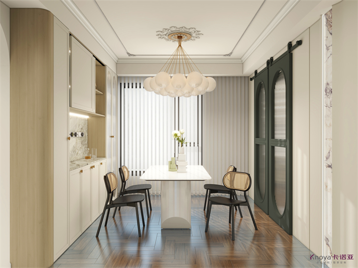 此方案是一套三室一書房加客餐廳的結構,根據客戶要求整體采用輕法式的風格,同時多個空間聯動,拉近家人之間的關系。為了區分生活和工作,采納了用緊靠客廳一個臥室空間改造成書房獨立出來不會影響整體的休息區。生活不只有工作!設計理念:讓設計包容生活的瑣碎,融入生活,愛上生活。整家視界 全案生活|第六屆卡諾亞整家設計精英聯賽