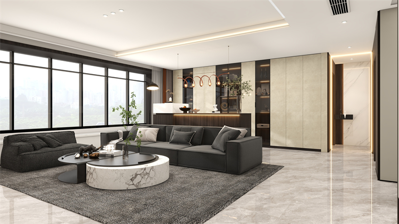 整體空間以現代輕奢風格的設計基調為主,布置上簡約時尚的家具,營造溫馨的家庭氛圍;利落的線條搭配舒適質感的軟裝;開闊的空間為整個設計帶來自由閑適;迎合業主家庭成員的需求,將空間最大利用設計化,暖色調的燈光布置,整體溫暖舒適;各種材料相互協調,帶來時尚的氛圍。設計理念:聆聽業主需求,提供最佳設計,創造溫馨夢想家園。整家視界 全案生活|第六屆卡諾亞整家設計精英聯賽