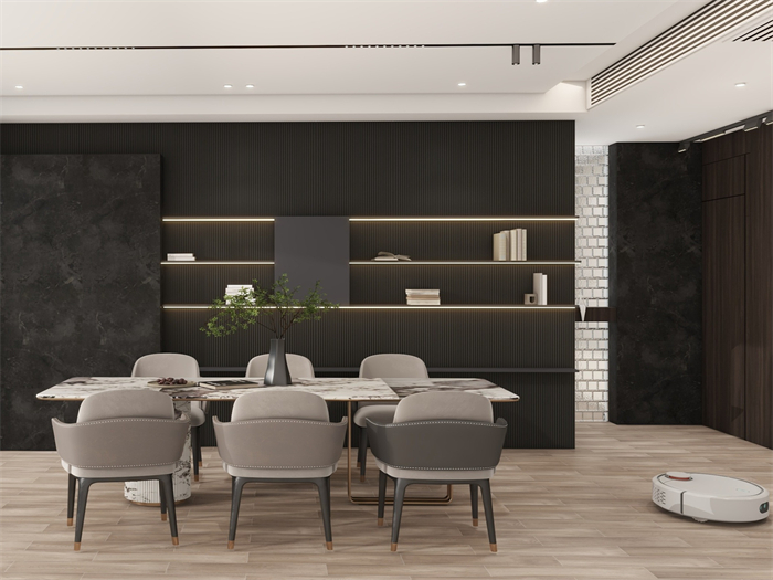 作品簡介:人們的生活節奏相對較慢,故在設計階段我希望整體的氛圍是精致的、是有沉穩的氛圍感。室內空間運用線條與幾何造型的穿插組合,柔美的弧形造型,弱化空間棱角,客廳弧形造型,引入空間場景,懸浮頂內嵌燈光,用心感受這份柔和與溫馨。它以高品質、設計感、舒適、簡約為風格特色點。摒棄傳統奢華風格。回歸生活本真,家居空間給人時尚簡約、氣質優雅且不失溫馨舒適的感覺。愛生活到極致,不留遺憾。
