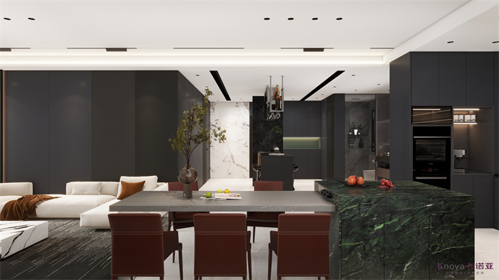 作品簡介:整體以現代為主,入戶區域和酒水吧區域做環繞型設計,整體更通透空間,客廳背景墻運用了疊級的手法弱化承重柱,沙發背景同樣采用疊級做到呼應的設計,主臥拆除隔壁臥室做主臥步入式衣帽間,增加了主臥的靈動以及空間,兒童房采用類似榻榻米手法設計,整體做收納儲物學習娛樂空間,廚房做開放式廚房,整體色系為黑灰,天花吊頂采用無主燈加智能燈光,整體空間和氛圍舒適度拉滿。
