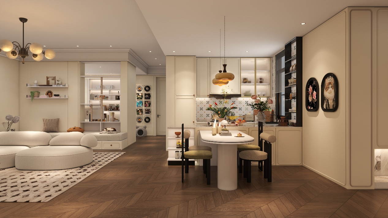 羅亞全屋定制深諳 Z 世代對 “氛圍感” 的追求,其2025年春季新品香頌系列,仿佛將香榭麗舍大街的璀璨夜景濃縮于方寸之間,供我們欣賞、享受線條、色彩沖擊之美。在其中羅亞將法式美學(xué)的精髓提煉為三大設(shè)計語言:法式線條勾勒空間的優(yōu)雅輪廓,天然布藝增添觸感的柔軟與溫度,奶油色系則奠定整體的溫潤基調(diào)。三者交織,共同營造出精致格調(diào)、復(fù)古典雅又滿含浪漫氛圍的空間意境 。